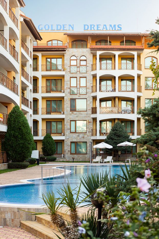 Golden Dreams is located on the Bulgarian Black Sea coast, in the center of Sunny Beach Resort. The place has excellent road infrastructure and connections, and the location of the resort complexes provides quick access to the beautiful Ancient city of Nessebar and to St. Vlas Resort, only at 10 minutes by car.