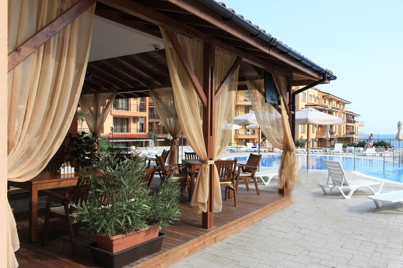 Star Dreams is 100 meters from the beach of Sveti Vlas, in a quiet area with excellent infrastructure. The beach is vast, the most exclusive gym is nearby, and the beautiful marina is at just 2 km distance. The proximity of the resort provides opportunities for activities and entertainment for the entire family.